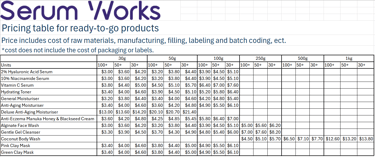 Pricing table for our